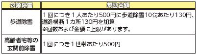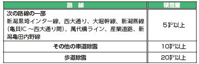 除雪は計画路線において、下表の積雪量を超えた場合に気象予報などから判断し行います。