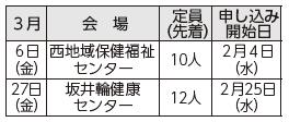 申し込み:2月18日(水)から西区 健康福祉課 健康増進係(【電話】025-264-7423)