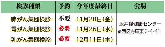今年度の集団がん検診も残すところあとわずか。あなたのために、そして家族のために、検診を受けましょう。