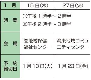申し込み:各予約締切日までに電話で巻地域保健福祉センター(【電話】0256-72-7100)へ