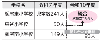 東谷小学校は令和10年4月に栃尾東小学校に統合。栃尾南小学校は、保護者や地域住民と再編の話し合いを継続します。