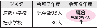 桂小学校は令和9年4月に浦瀬小学校に統合します。