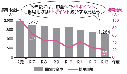 栃尾地域の令和10年度の小学1年生は地域全体で26人と推測しています。こうした背景から令和6年度、住民からなる検討会を設置。令和10年4月を目途に学校再編を検討するよう、市へ報告しました。長岡地域でも、桂小学校の保護者が浦瀬小学校との統合を求め、市へ要望しました。