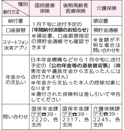11月上旬に日本年金機構から「社会保険料(国民年金保険料)控除証明書」が送付されます(10月以降に今年初めて納付する人は来年2月上旬)。申告には、この証明書や領収書を添付してください。