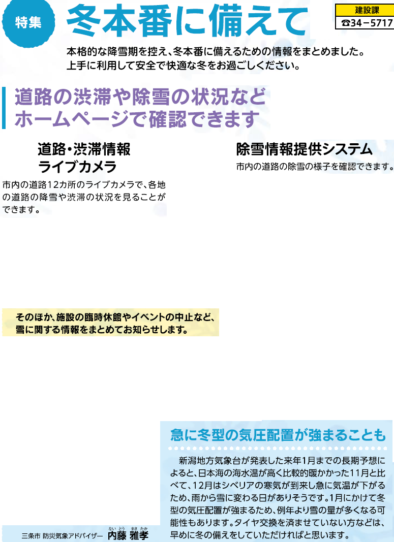 くらし [特集]冬本番に備えて 1/32 次の記事 発行日 : 2025年12月01日 自治体名 : 新潟県三条市 広報紙名 : 広報さんじょう 令和7年12月1日号 Tweet シェアする 三条市合併20周年記念 航空自衛隊中部航空音楽隊演奏会