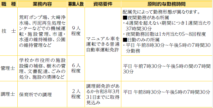 申込方法:写真を貼付した履歴書に希望職種を書き、持参か郵送ください。