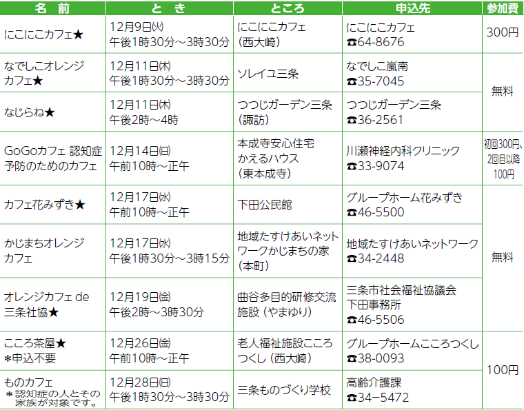 ■さんじょうオレンジカフェ *申し込みが必要です。
