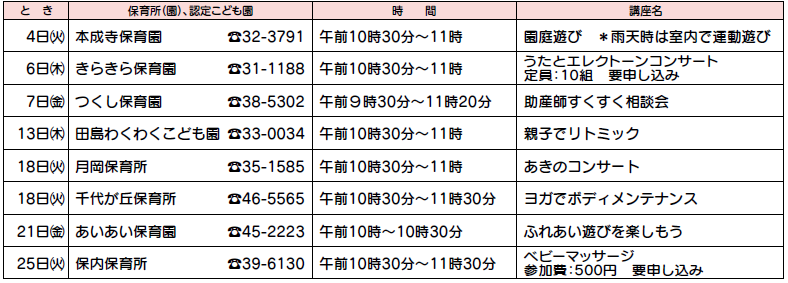 *本成寺保育園は午前8時30分~11時45分、午後1時15分~3時