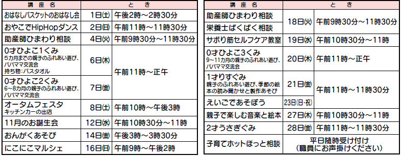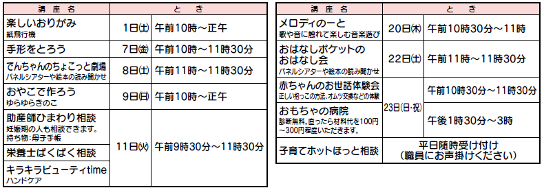 掲載しているのは一部のイベントです。その他のイベントは、三条市子育て支援サイトのお便りをご覧ください。