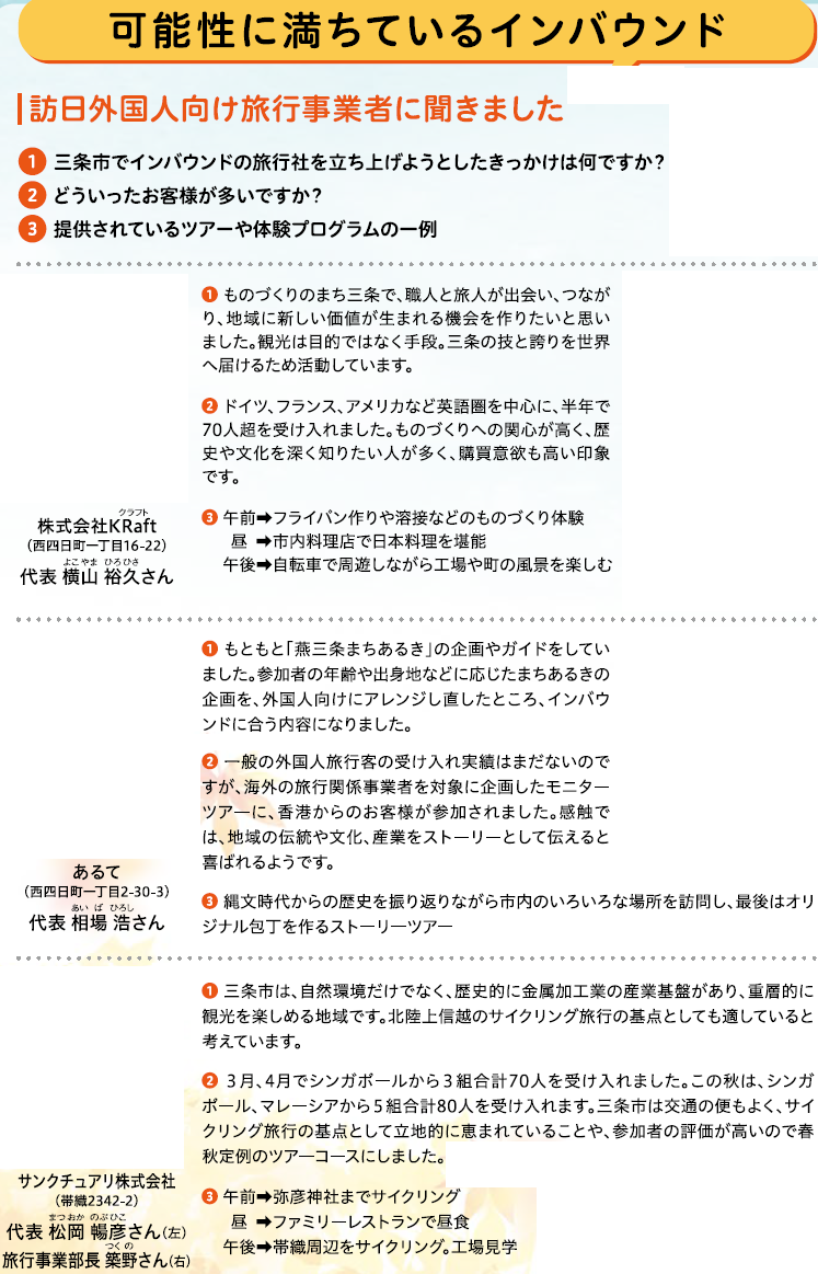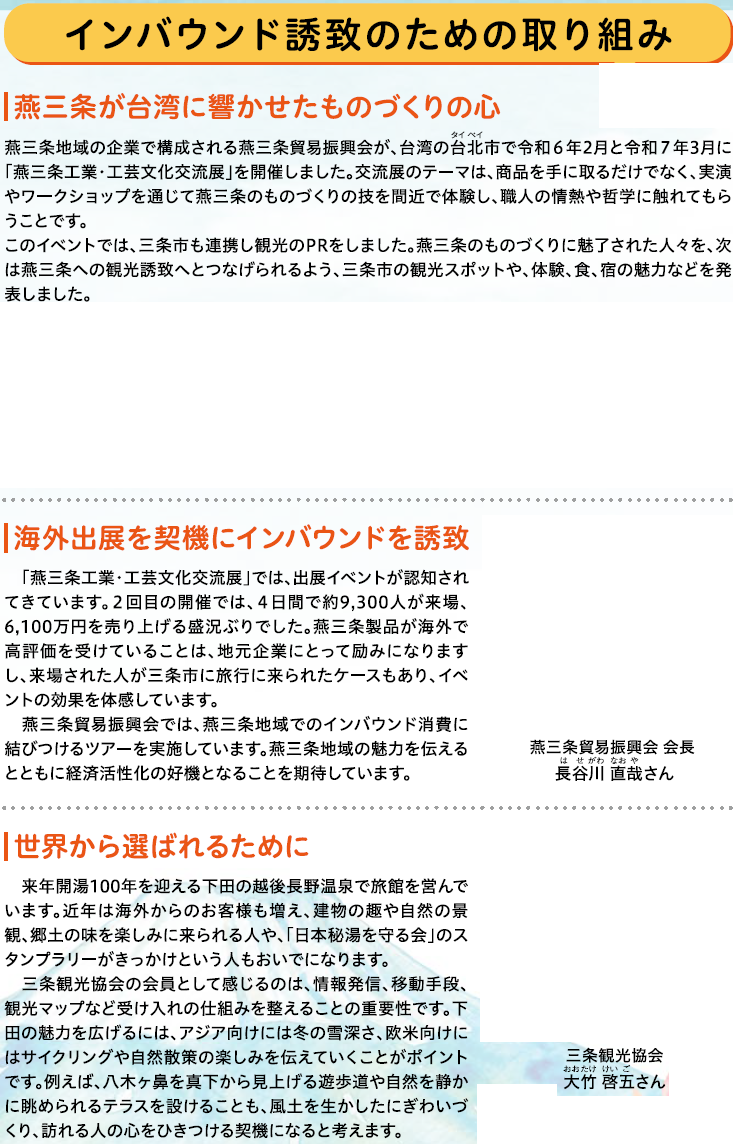 くらし [特集]インバウンド誘致で地域を元気に 1/36 次の記事 発行日 : 2025年11月01日 自治体名 : 新潟県三条市 広報紙名 : 広報さんじょう 令和7年11月1日号 Tweet シェアする “ツナガル”フォーラム