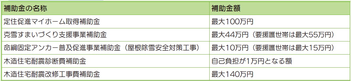▽住宅に関する補助制度の一覧