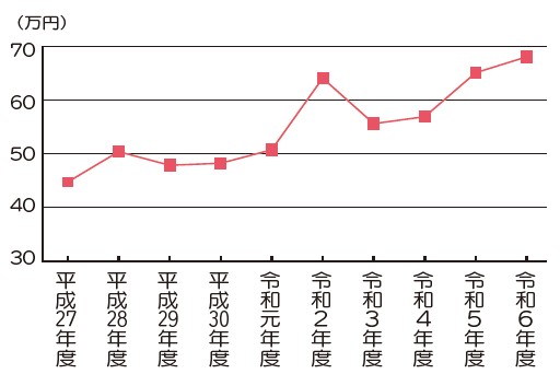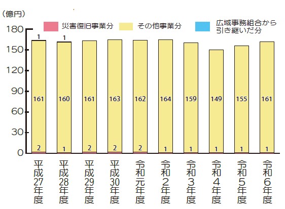 令和2年度は、特別定額給付金給付事業により一時的に増加しました。令和5・6年度は、図書館等複合施設整備事業や小・中学校施設整備事業により増加しました。
