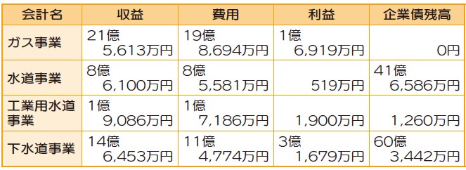 企業会計は、市が公共の福祉の増進を目的として設置し経営する企業の特別会計です。小千谷市では現在、水道事業、工業用水道事業、下水道事業の3事業を経営していますが、令和6年度までガス事業も経営していました。災害に強い施設整備や、年数が経過した水道管の布設替など計画的な投資を進めながら、安全安心の確保とサービスの向上、経営の安定に努めています。
