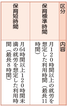 ※保護者の就労時間が1か月当たり64時間から、「保育短時間」の利用が可能になります。