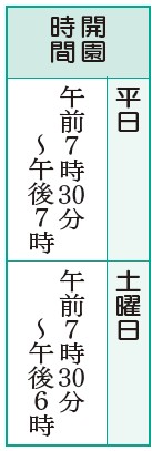 保育時間:通常の保育時間は平日が午前8時~午後4時、土曜日は午前8時~正午です。なお、保護者の勤務時間などの状況に応じて、下表の開園時間の範囲で決定します。