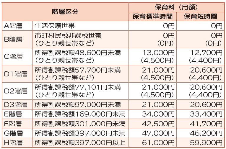 保育料:保護者の所得に応じて保育料が決まりますが、幼児教育・保育の無償化により、下記の場合は0円になります。