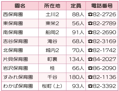 ・市立認可保育園について:各保育園または教育・保育課保育係