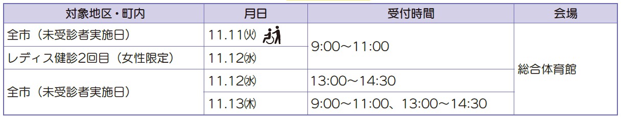 ※11月11日(火)に車いすを利用する方や階段歩行が難しい方も受診できるリフト付き胸部レントゲン車を試験導入します。詳細は市ホームページをご覧ください。