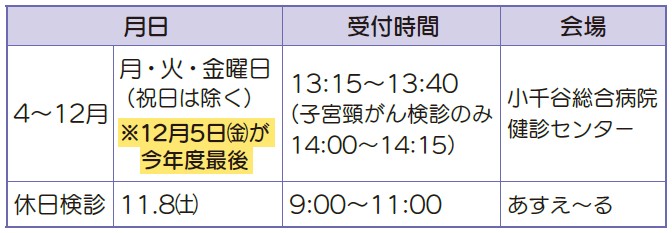 ・市外に転出した時点で小千谷市の健(検)診を受けられなくなります。