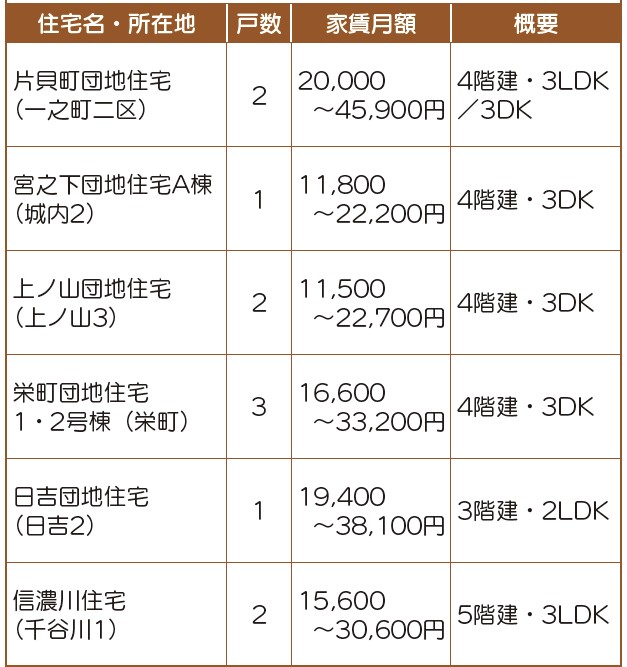 ▽市営住宅:小千谷市が運営する公営住宅です。