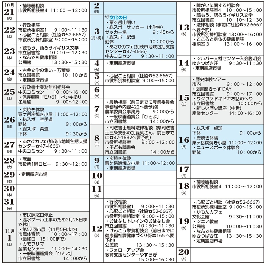 くらし 暮らしのカレンダー 10月・11月 42/48 前の記事 次の記事 発行日 : 2025年10月15日 自治体名 : 新潟県加茂市 広報紙名 : 広報かも 令和7年10月号 保健・衛生事業の日程は、健康カレンダーをご覧ください。 ■今月の納税 個人市県民税…3期、 国民健康保険税・介護保険料…4期、 後期高齢者医療保険料…7期 納期限・口座振替日…10月31日(金) Tweet シェアする 救急車を呼ぶか迷ったときは 休館日(10/21(火)~11/20(木))
