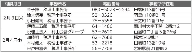 各税理士事務所において、以下の人を対象に少額な還付申告相談や申告書の作成を無料で行います。相談を受ける場合は、税理士事務所へ事前に電話連絡が必要です。