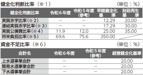 この比率は、財政の健全度を測るもので、令和6年度は全ての比率で基準を下回っていました。また、監査委員の監査を受けて市議会に報告しています。