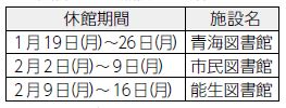 その他:返却日が休館期間に当たる場合は、貸出期間を延長します。