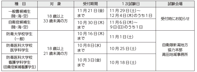 問合せ:自衛隊新潟地方協力本部 高田地域事務所