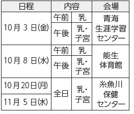 ・受診者数に限りがありますので、ご希望の方はお早めにご予約ください。