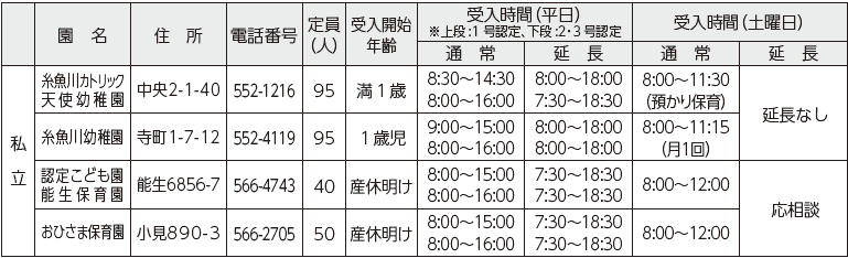 ※糸魚川東保育園は、民営化に向けた準備を進めており、早ければ令和9年4月、私立園になることを見込んでいます。詳しくは広報いといがわ8月号をご覧ください。