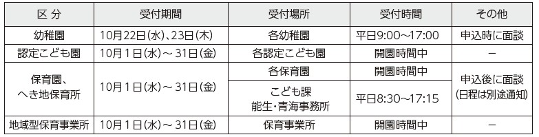 年度の途中から入園を希望される方も、この受付期間内にお申し込みください。