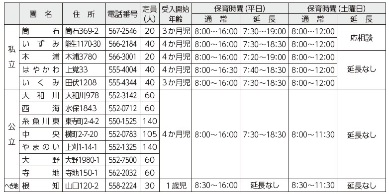 ※寺地保育園は、3歳未満児の保育を実施する施設です。