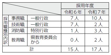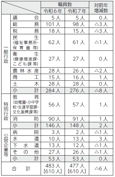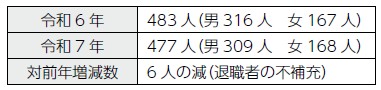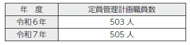 令和6年度から令和7年度までの定員管理計画職員数は次のとおりです。