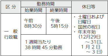 (1)勤務時間(令和7年4月1日現在)