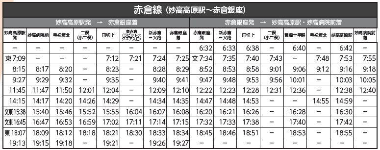 ※詳細な時刻表は、環境生活課と妙高高原支所、妙高高原観光案内所で配布しています