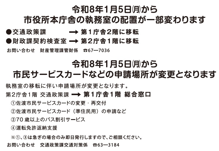 くらし 令和8年1月5日(月)から変わります 5/27 前の記事 次の記事 発行日 : 2025年12月10日 自治体名 : 新潟県佐渡市 広報紙名 : 市報さど 令和7年12月号 Tweet シェアする 島の話題 書類をクリーンセンターに出す場合はファイルやバインダー・段ボールから出してください