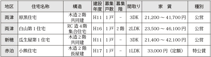 申込み:建築住宅課(本庁第2庁舎3階)、各支所産業建設係および各行政サービスセンター地域支援係