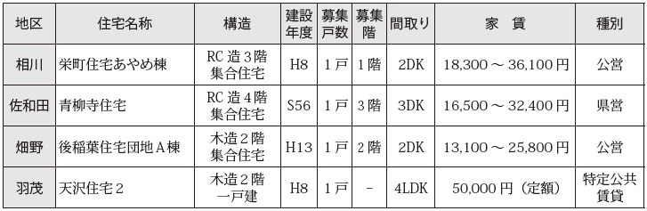 申込み:建築住宅課(本庁第2庁舎3階)、各支所産業建設係および各行政サービスセンター地域支援係