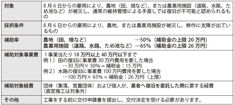 9月以降、新たに確認された農地被害(田、畑、農道、用排水路など)がありましたらご相談ください。