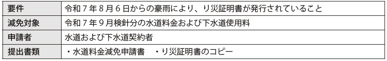・原則、令和7年8月6日以前の2年間に漏水による水道料金および下水道使用料の減免を受けた方は対象になりませんが、今回は対象となります。
