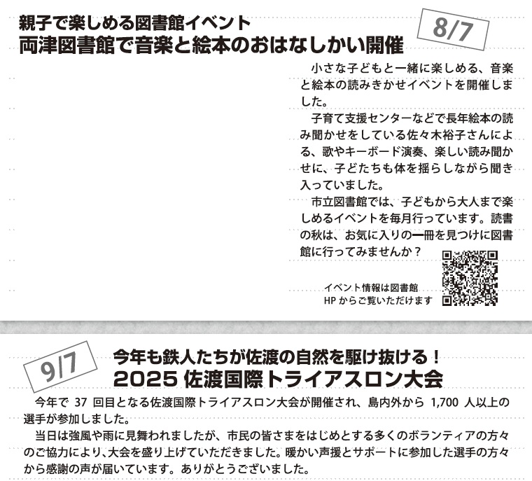 くらし 島の話題 3/21 前の記事 次の記事 発行日 : 2025年10月10日 自治体名 : 新潟県佐渡市 広報紙名 : 市報さど 令和7年10月号 Tweet シェアする 「佐渡で働きたい」がここから始まる 季節性インフルエンザ・新型コロナの予防接種が始まりました