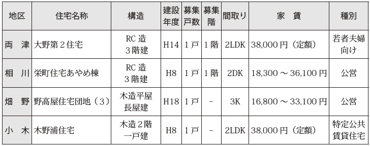 申込み:建築住宅課(本庁第2庁舎3階)、各支所産業建設係および各行政サービスセンター地域支援係