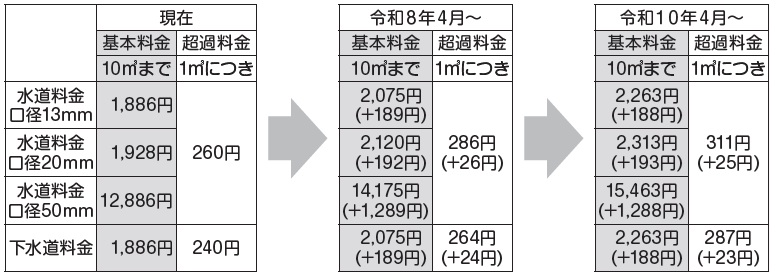令和8年4月から上下水道料金を2回に分けて値上げします。