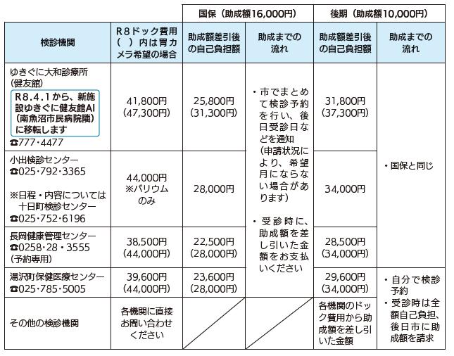 (国保)助成が受けられるのは、下の表にある検診機関のみです。