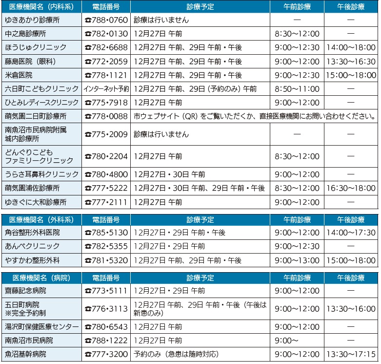 ■診療所・病院の年末年始(12月27日(土)~1月4日(日))診療予定