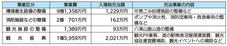 環境衛生施設、鉱泉源の保護管理施設、消防施設などの整備や観光振興に要する費用に充てるため、入湯客に対して課税しています。