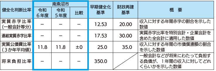 「地方公共団体の財政の健全化に関する法律」の規定により、令和6年度決算に基づく健全化判断比率と公営企業会計の資金不足比率を算定し、9月定例議会に報告しました。いずれも早期健全化基準を下回っており、財政状況は健全であるといえます。