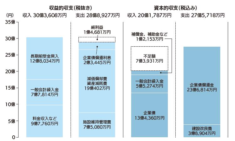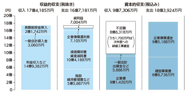 下水道事業は、地方公営企業法に基づき独立採算で経営を行うため、収益的収支と資本的収支に分けて予算を管理しています。