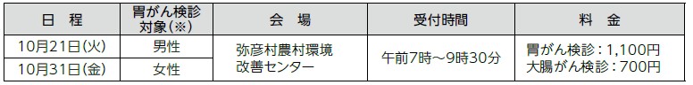 (※)大腸がん検診は、男女関係なく上記の日程で受付けします。